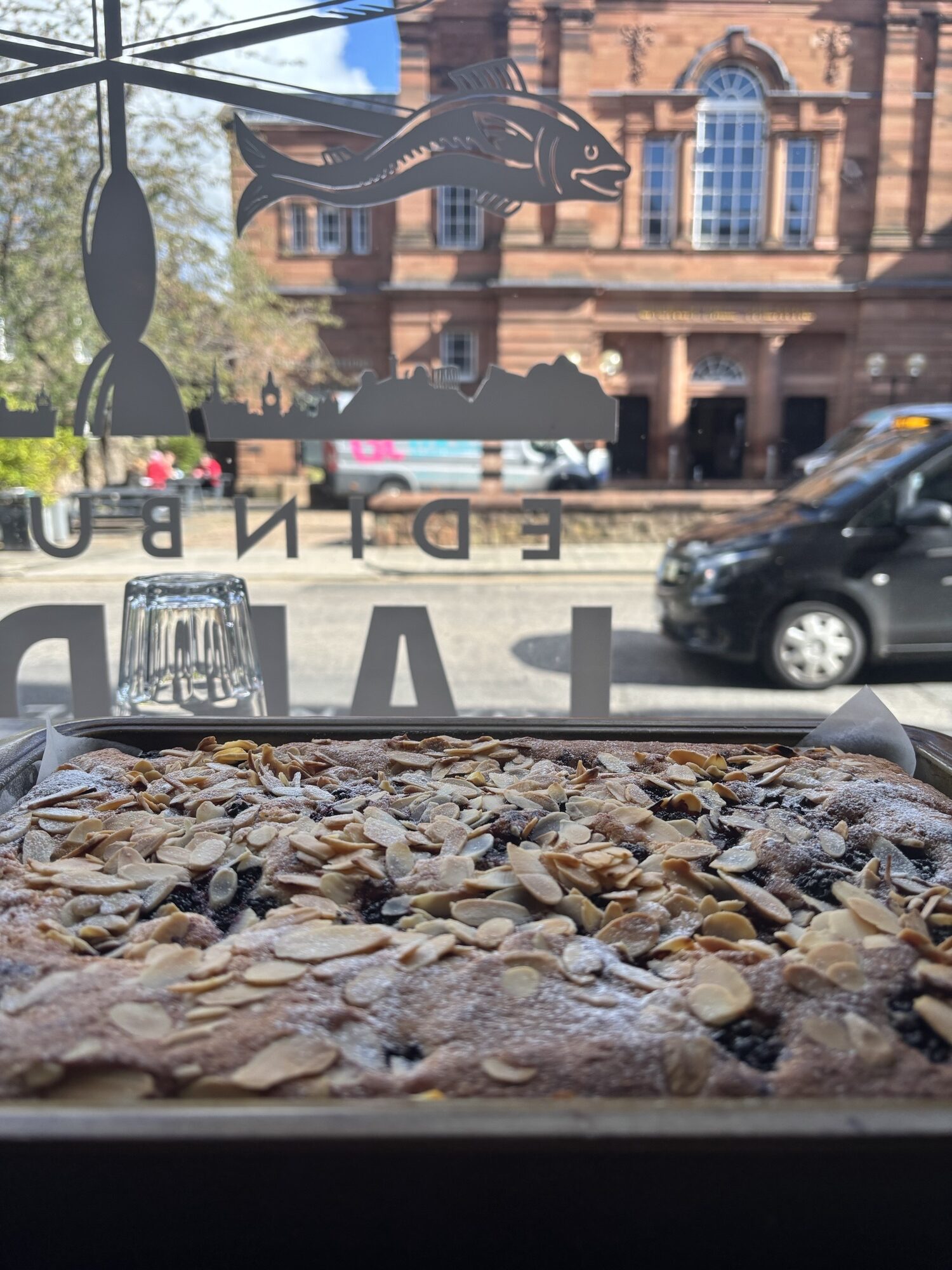 Among the highlights this season is our bramble frangipane cake. A classic frangipane base is enriched with the tart juiciness of brambles, their deep purple juices staining the almond sponge with pockets of sweetness. It’s rustic, generous, and utterly delicious — the kind of bake that tastes like autumn afternoons in the Scottish countryside. Paired with a coffee or a pot of tea, it’s an instant mood-lifter.